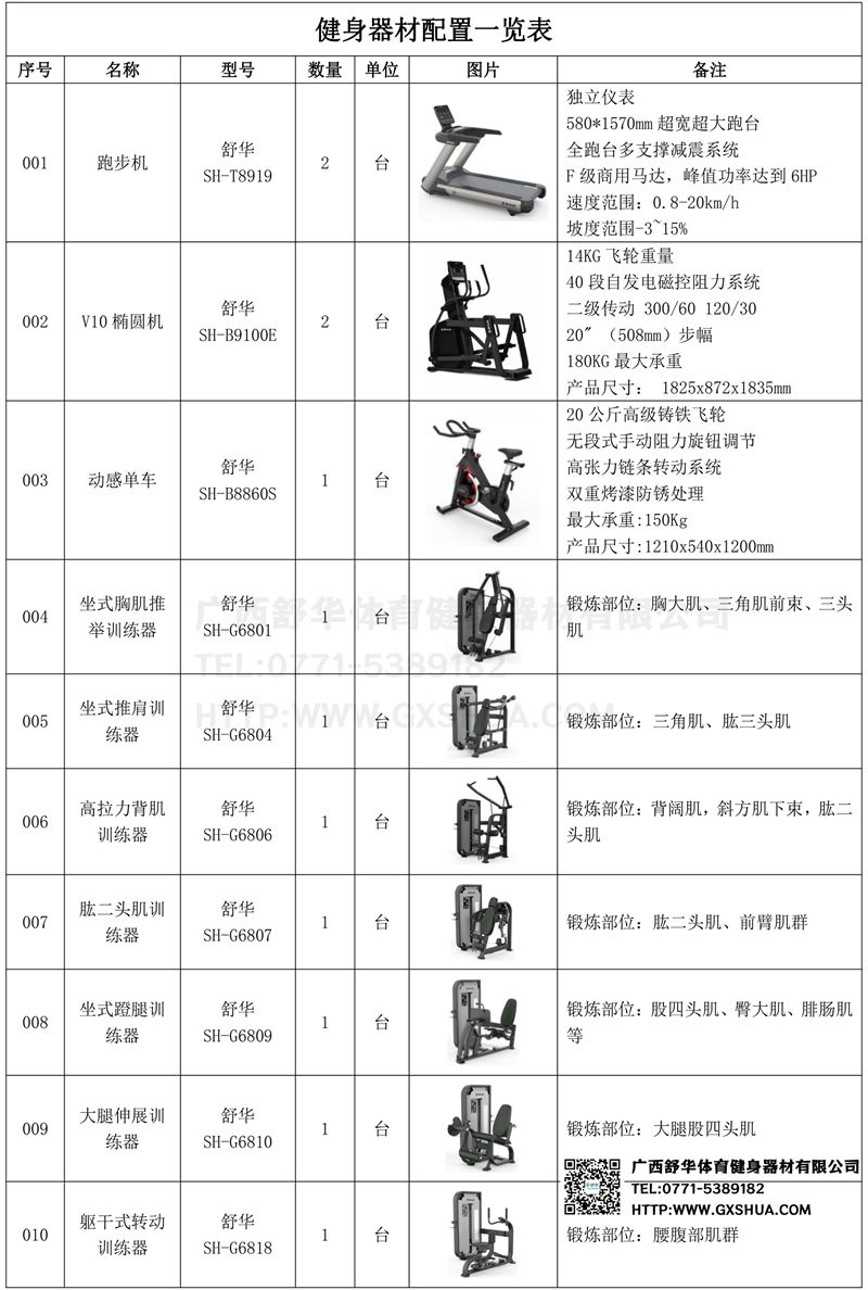 1.leyu.乐鱼V9高端跑步机SH-T8919*2台-独立仪表-简洁大气,全新外观设计,健康运动新选择;心率监测功能,可通过手握心率、无线心率带等不同方式实时采集心率数据;580*1570mm超宽超大跑台-跑感舒适,跑台整体安全稳定;全跑台多支撑减震平台,保证跑台超强支撑力,达到180kg支撑,满足专业健身房需求。F级商用马达-超强马达,AC 3.0HP 交流,峰值功率达到6HP,F级商用品质。速度范围达到0.8-20km/h;V9跑步机可实现跑台扬升功能,坡度范围-3~15%,满足客户不同的锻炼需求。