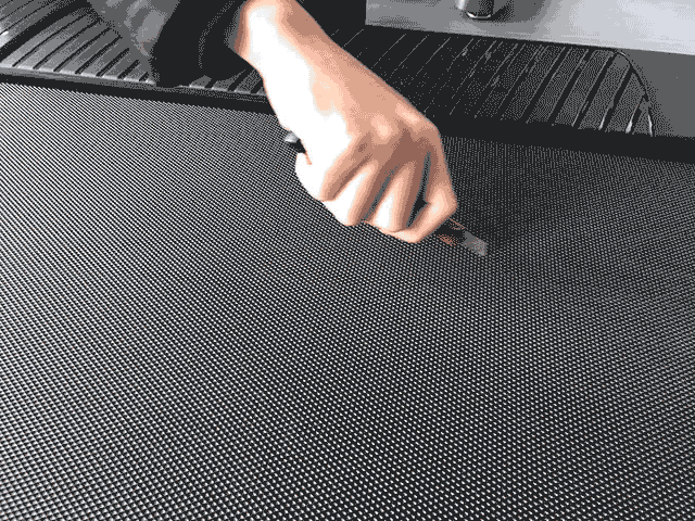 跑带是与跑步者直接接触的的重要的部件,跑带的牢固程度决定了跑步机的安全性与跑步的感觉。质量好不好,刀口来试试,因此暴力评测我们决定用美工刀来试试跑带的韧性。